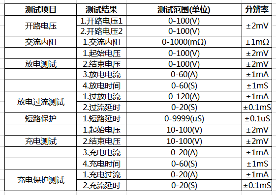 5.短路保護:測試電池正負極短接電池切斷保護時間(微秒級別)。